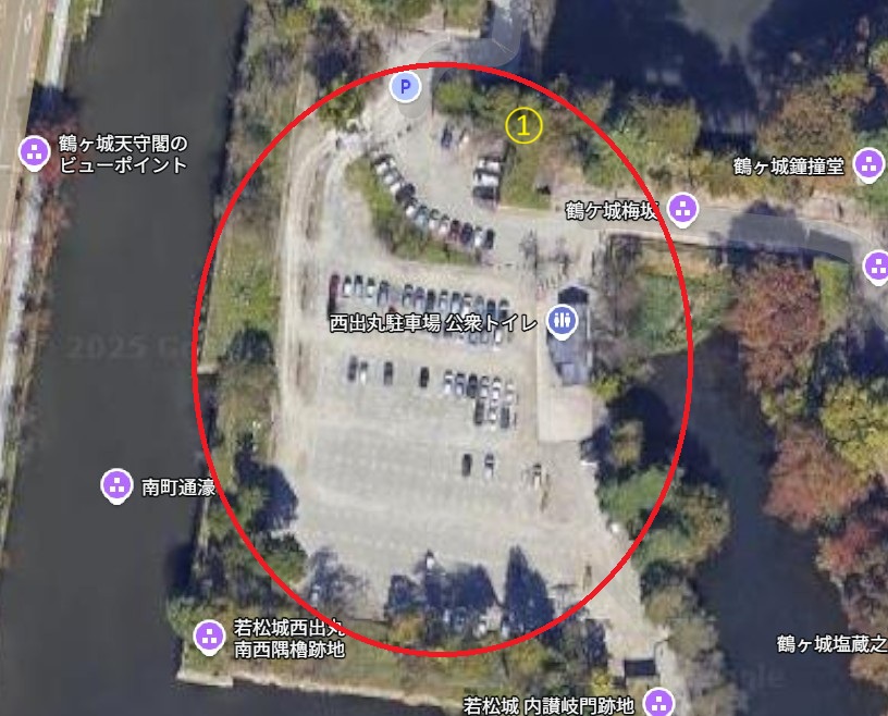 ①鶴ヶ城西出丸駐車場 200台駐車可