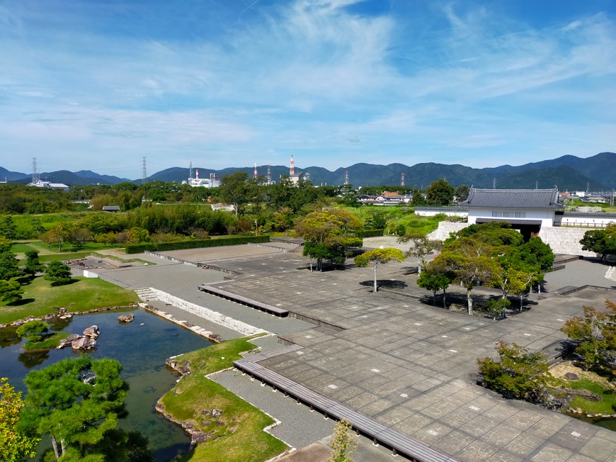 本丸跡とそこからの眺めです。本丸付近にも庭がいっぱいあり敷地は広かったです。