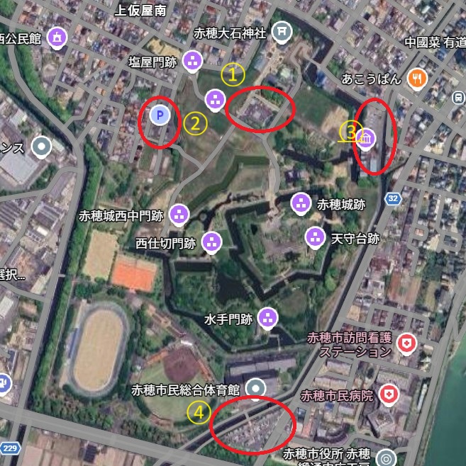 ③赤穂城跡公園東駐車場 約85台駐車可 8:30~17:30まで