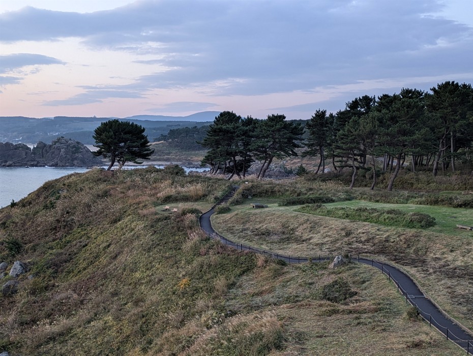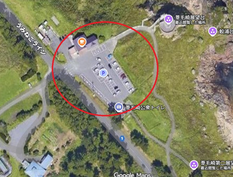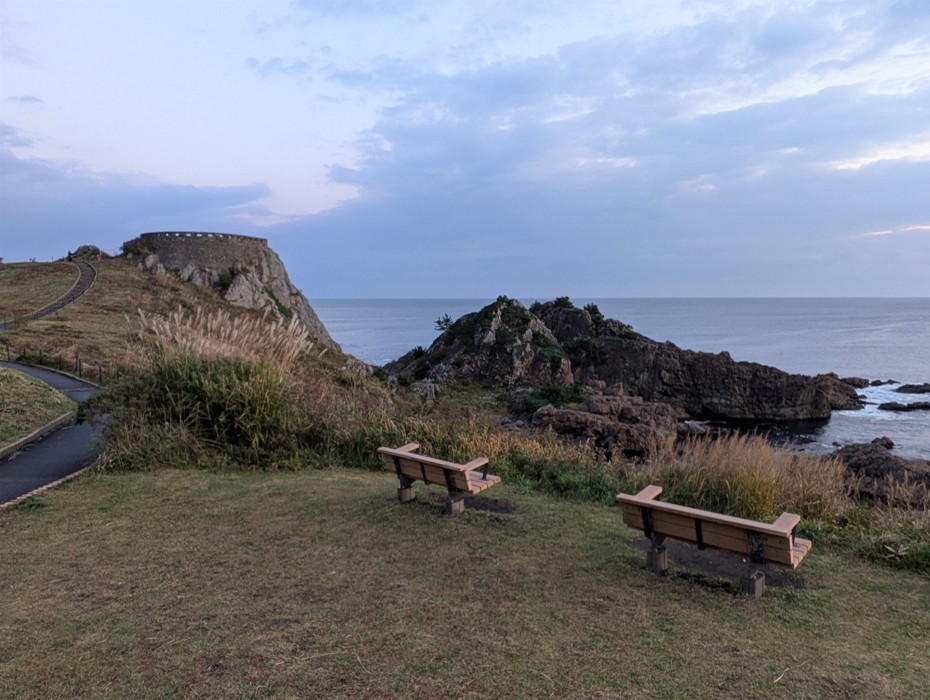 バス:JR八戸線鮫駅よりうみねこ号利用、葦毛崎展望台前下車すぐ