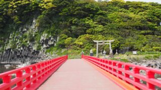 中心部の穴を通して夕日が見える円月島についての営業情報・アクセス・駐車場・見所写真などを掲載しています。