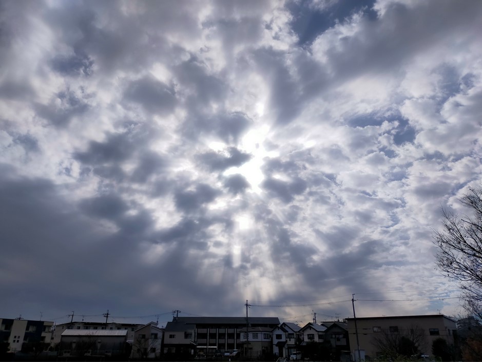 写真を撮っていると雲が厚くなってくるのですが、その隙間から強烈な陽の光がさして