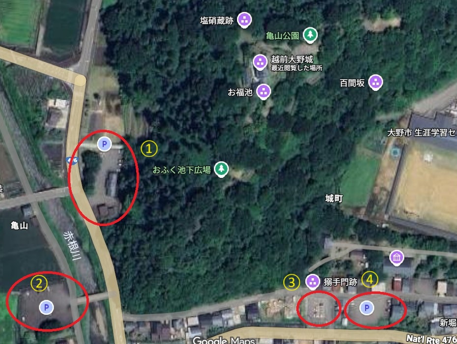 またはまちなか循環バス利用、結ステーション下車、徒歩約15分(大野市ホームページより)