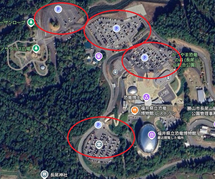 バス:えちぜん鉄道勝山永平寺線勝山駅よりコミュニティバス(ぐるりん中部方面)乗車、恐竜博物館前下車すぐ