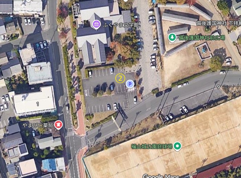②ふくやま文学館駐車場 乗用車30台 駐車可