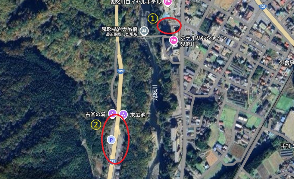 ①鬼怒楯岩大吊橋駐車場 20台ほど駐車可