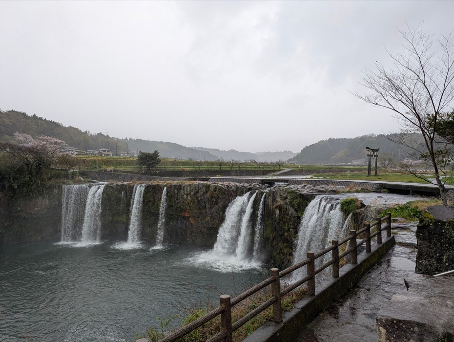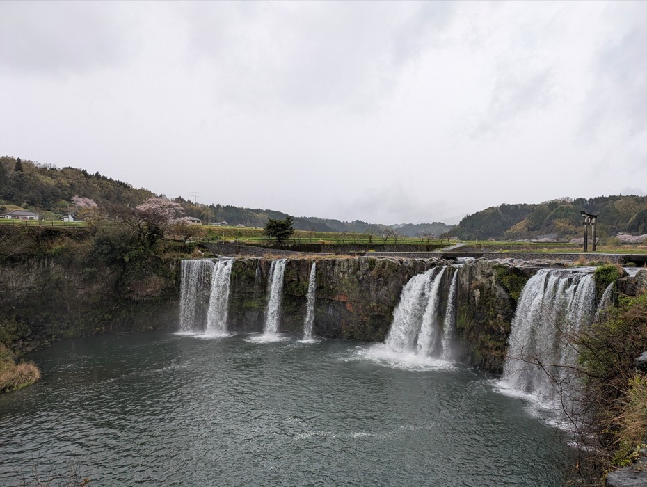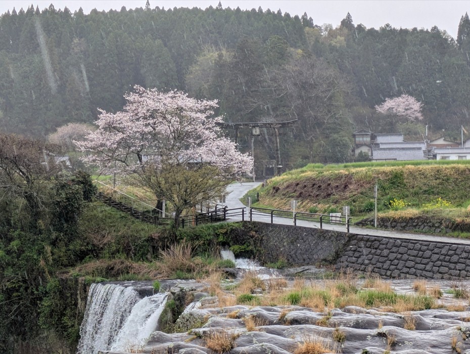 原尻の滝には2つの鳥居があるのですが(川の上にあるのが一の鳥居、桜の木と映っているのが二の鳥居)