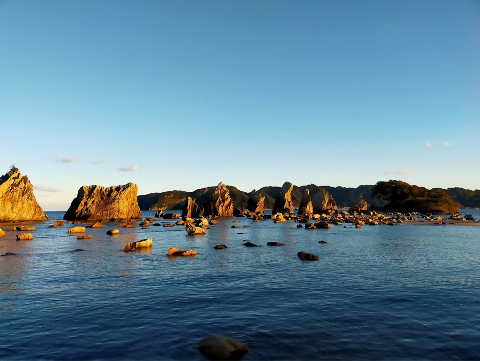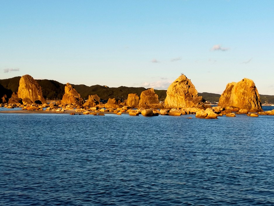 訪問時は満潮でした、さらに夕暮れ時で岩がオレンジ色になっていました。