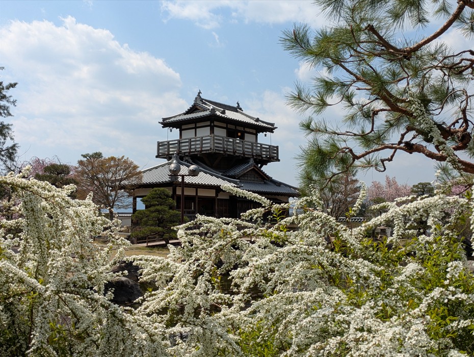 模擬天守あたりに桜が咲いているので一緒に撮ることが可能です。