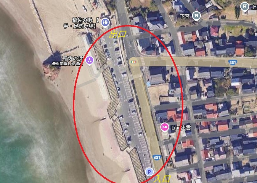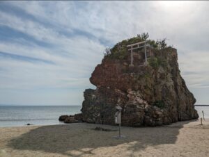 バス:JR出雲市駅 1番乗り場 日御碕線 日御碕灯台方面乗車 稲佐の浜下車すぐ