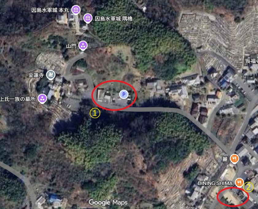 しかし、写真ではわからなかったのですが駐車場から水軍城に行くまでには