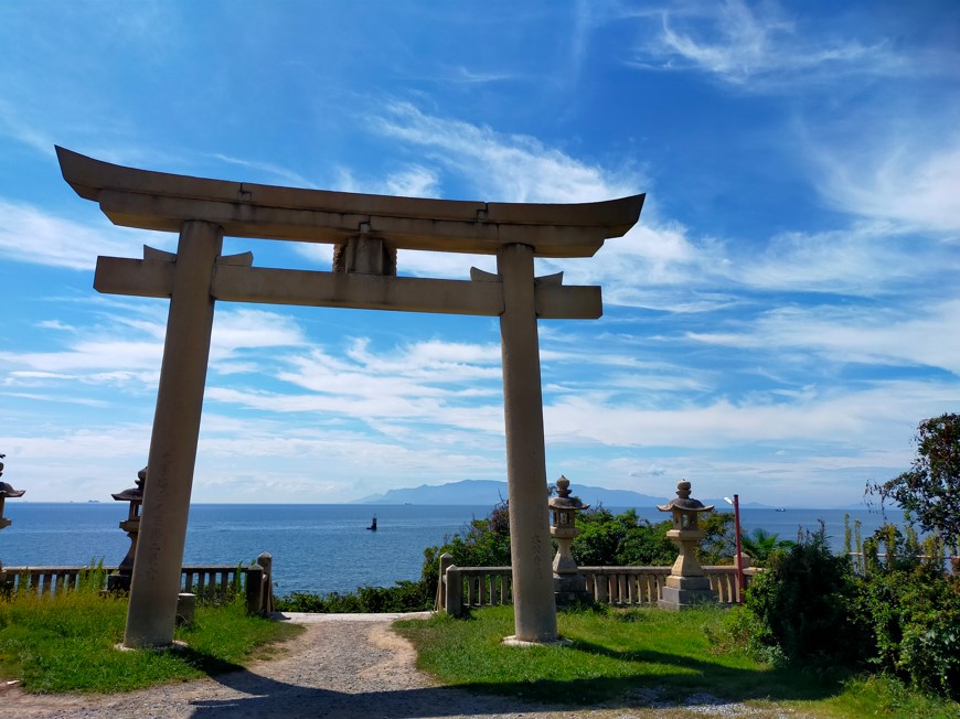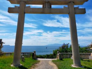 まず到着して一番最初に目が行くのが鳥居とその奥に臨む海です。