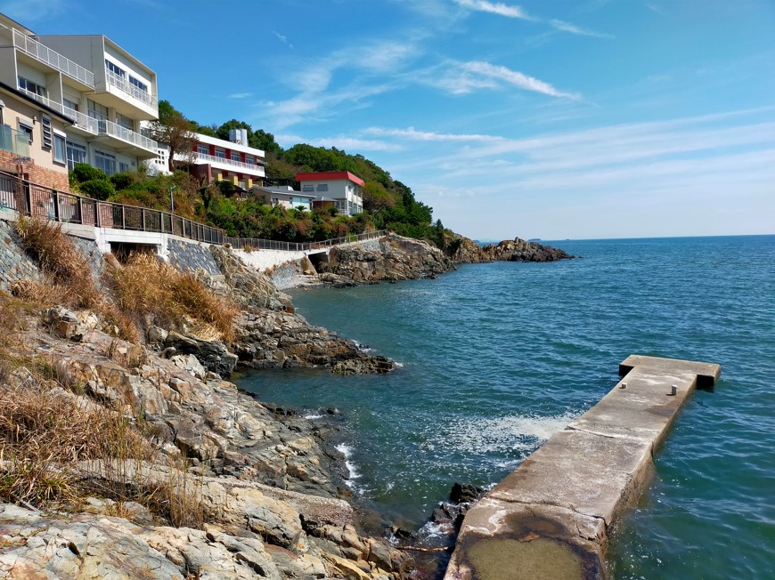 鳥居の奥には降りる階段があり、進んでいくと海岸が姿を現します。