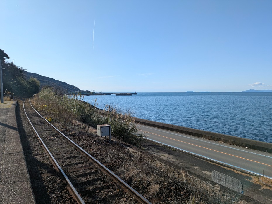 よく見る投稿写真から、ホームの奥がすぐ海だと思っていました(笑)