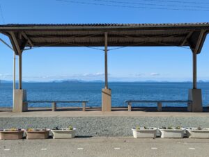 電車は1時間に1本ぐらいは停車するぐらいで、下灘駅に到着した時はあと15分ぐらいで