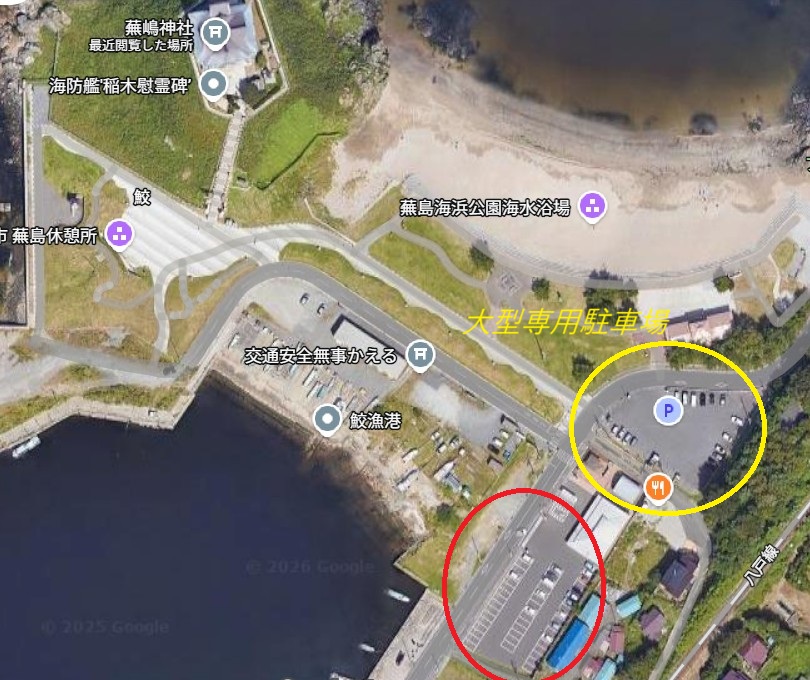バス:JR八戸線鮫駅よりうみねこ号利用、蕪島海浜公園下車すぐ