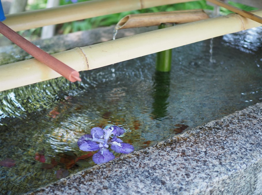花手水ではありませんでしたが、手水にイチハツの花びらが浮いていてとてもよかったです。