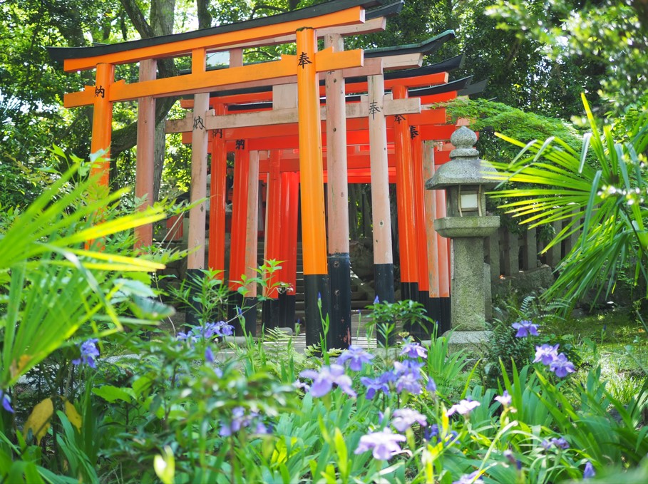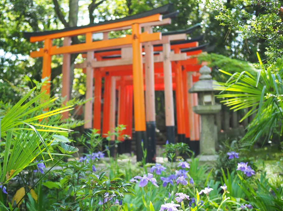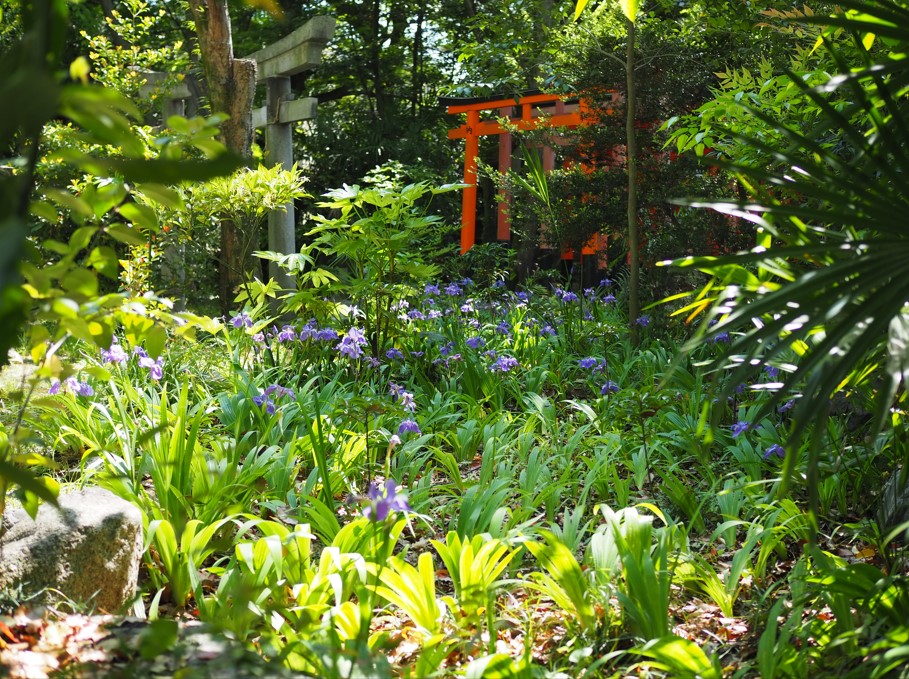 個人的な一番の見所は境内にある福壽稲荷神社の複数の鳥居とイチハツです。すこしズーム気味に撮ると凝縮されていい感じです。