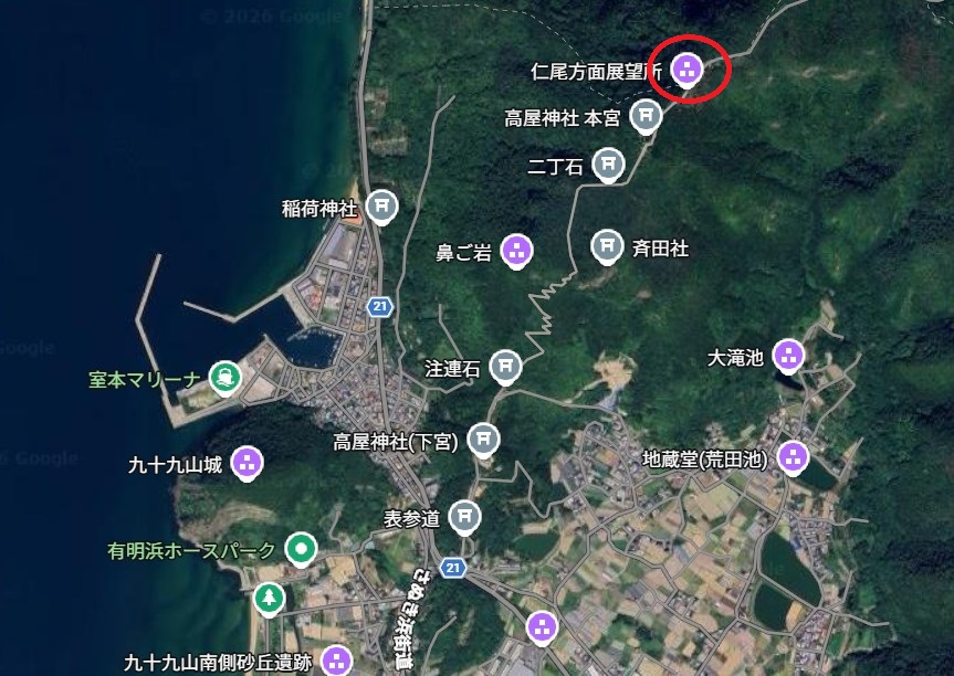 実は奥の看板→にそって少し道からは外れたところに展望スペースがあるのですが