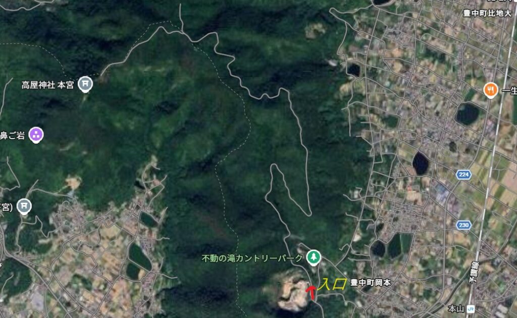 入口の画像、左側は会社の敷地なので入らないように気を付けてください。入口から約4キロほど狭い道を走ることになります