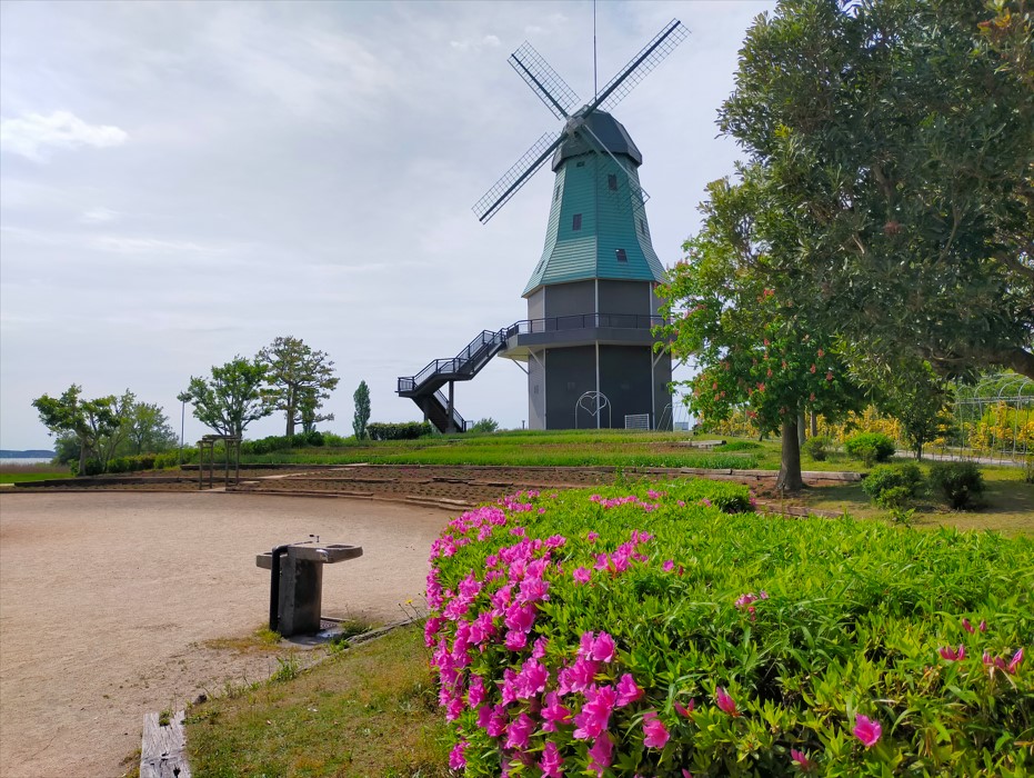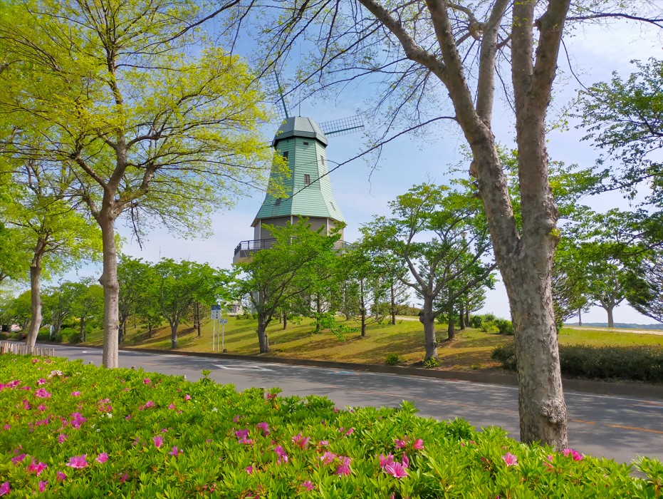 バス:JR常磐線土浦駅西口2番乗り場より Cコース霞ヶ浦循環乗車 霞裏の湯・オランダ風車・水郷体育館下車すぐ