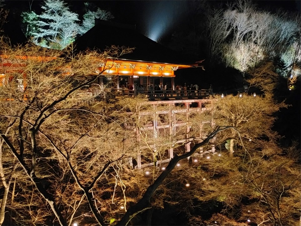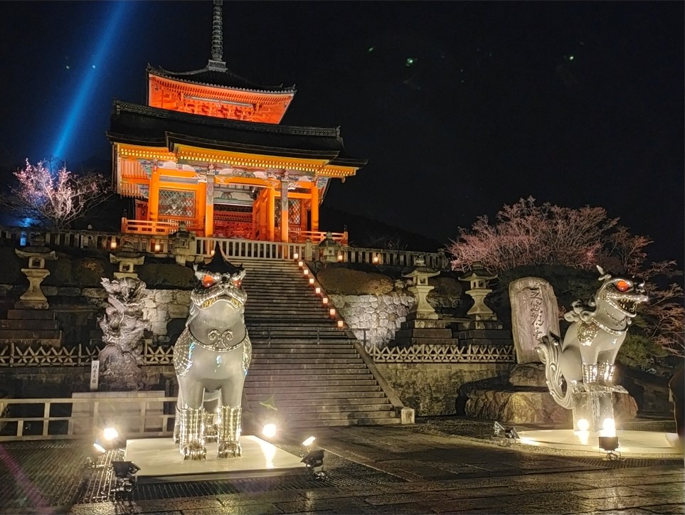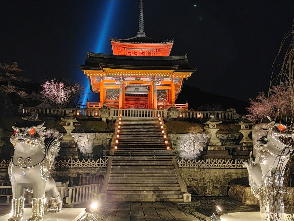 八坂神社・八坂の塔・東山の町並み・清水寺が灯ろうで綺麗にライトアップされていました。