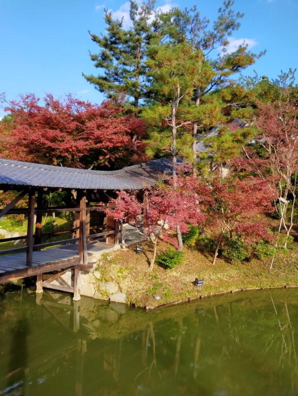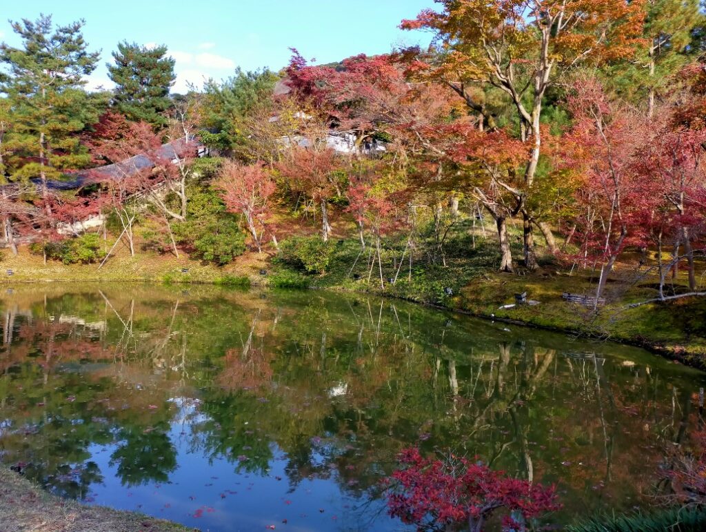池(臥龍池・偃月池)や竹林もあり、枯山水庭園の他にも見所は多数あります。