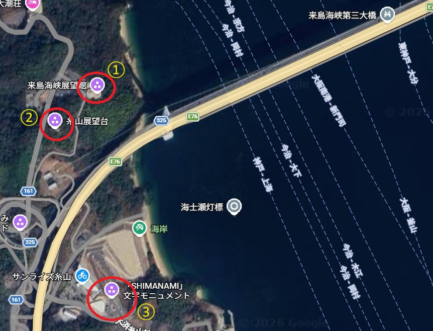 ビューポイント①来島海峡展望館 橋と同じような位置から望めます