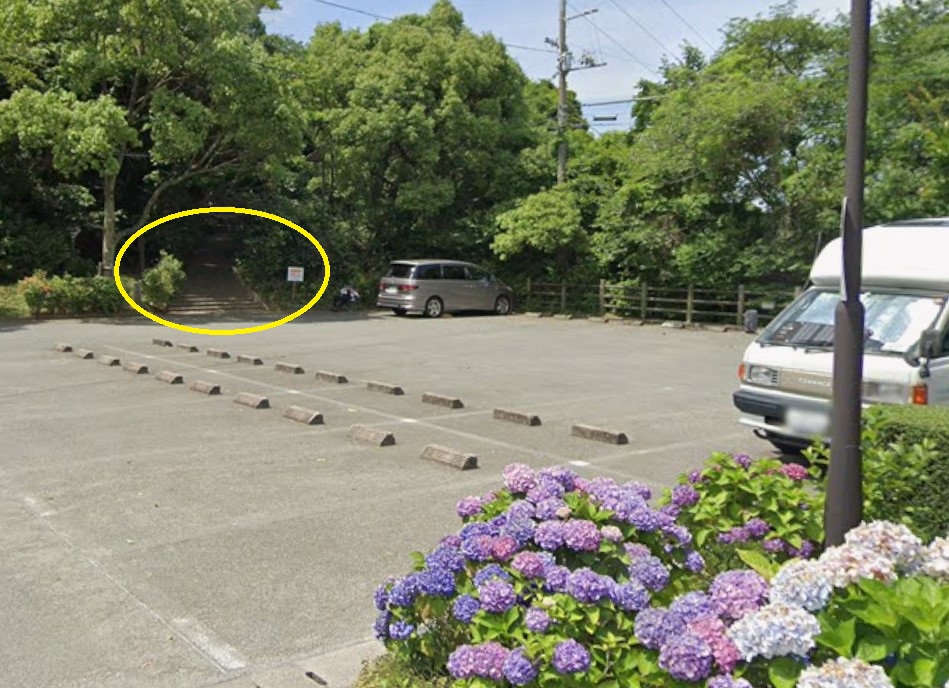 黄丸が入口です、展望台まで少し距離がありますが石段の道がある為迷うことはないです
