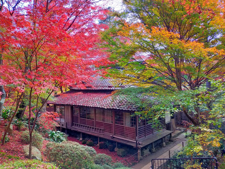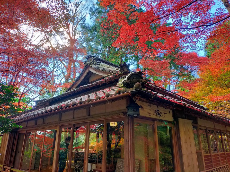 教林坊と、落葉であたり一面真っ赤な写真