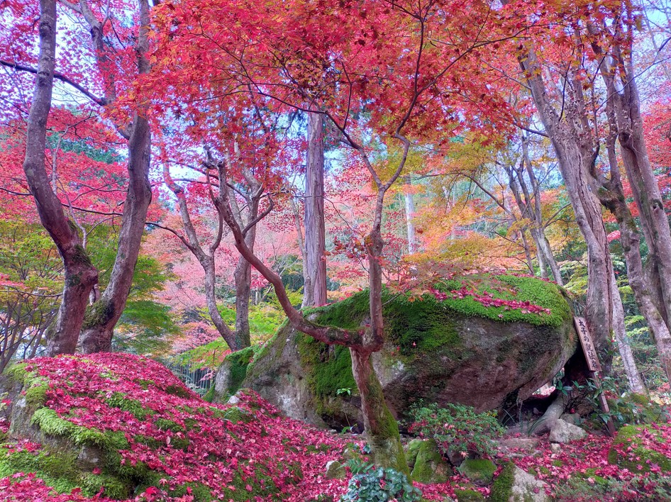 紅葉がとても有名ですが、境内には太子の説法岩と呼ばれる大きな岩とご本尊を祀る霊窟が