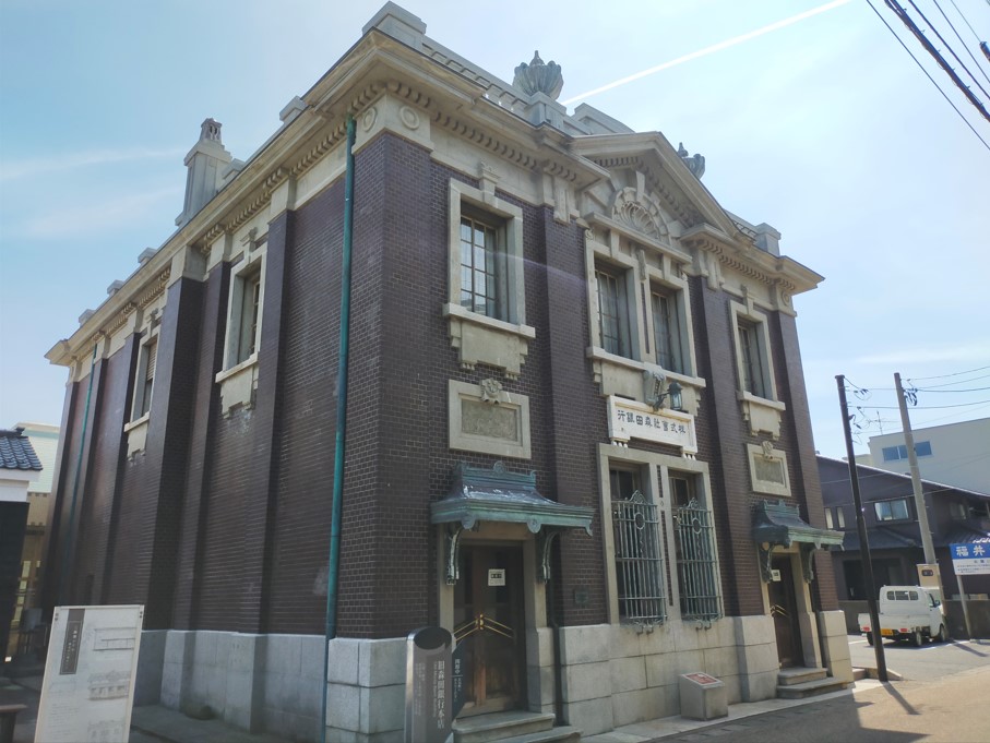 三国湊の発展を支えていた廻船業(旅客や貨物を輸送する仕事)の衰退を察知した豪商の森田家が森田銀行を創業し、県内でも優良な銀行として栄えていたそうです。のちに福井銀行と合併したとのことです。