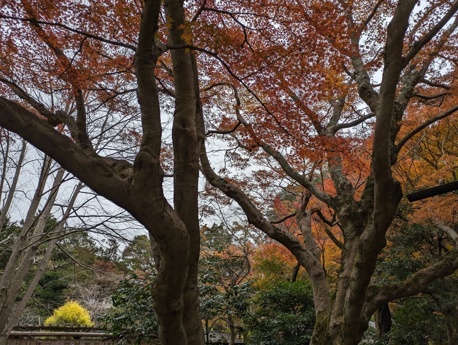 色もまばらだし葉も枯れかかっているような印象、最近はずっと猛暑なので将来的には綺麗な紅葉を観ることができない可能性も出てきています。