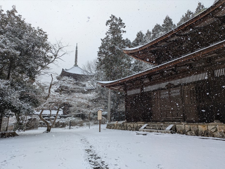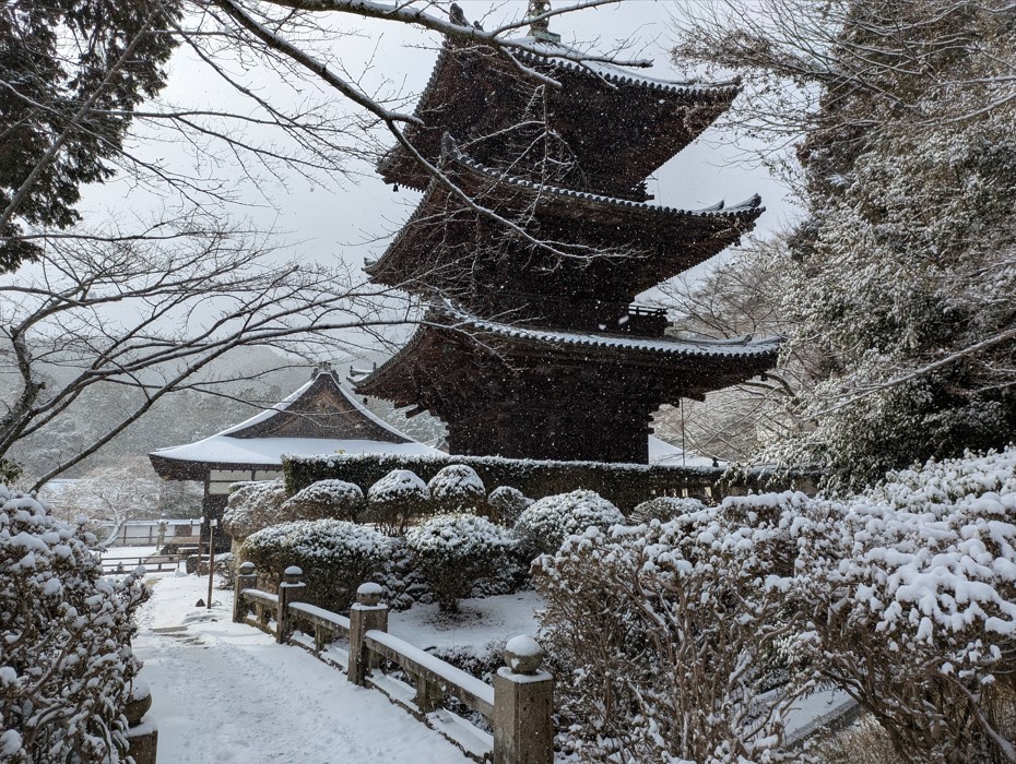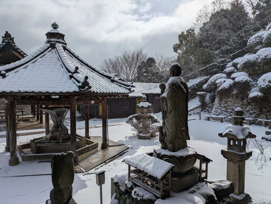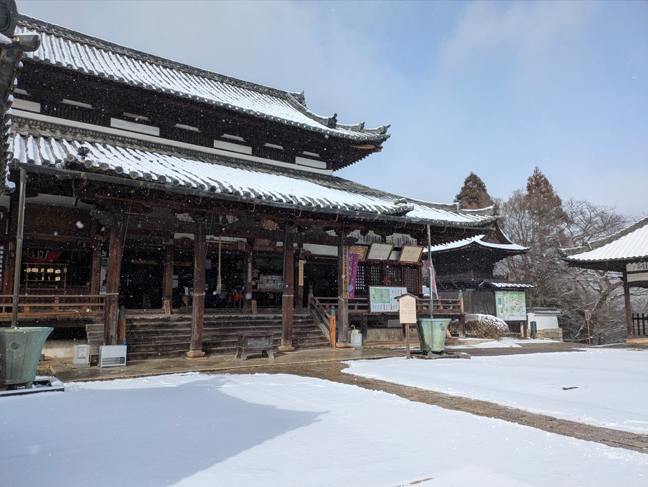 昼前ぐらいに三井寺に到着しましたがこの時が一番雪が降っていた気がしました。