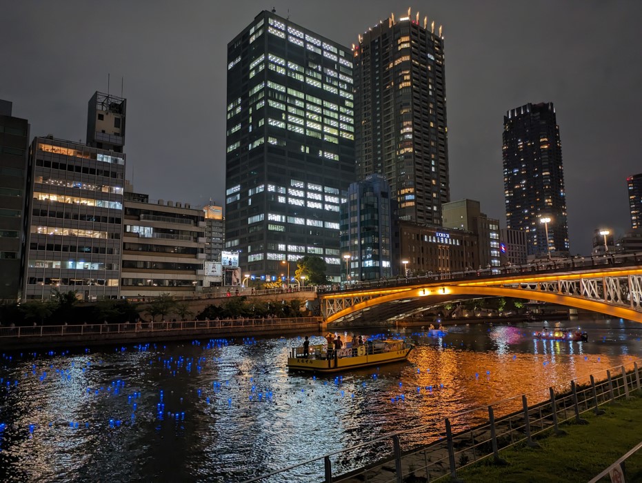 大川に青色の灯篭(?)をながし、大川がホントに天の川みたいになっててとても綺麗です。