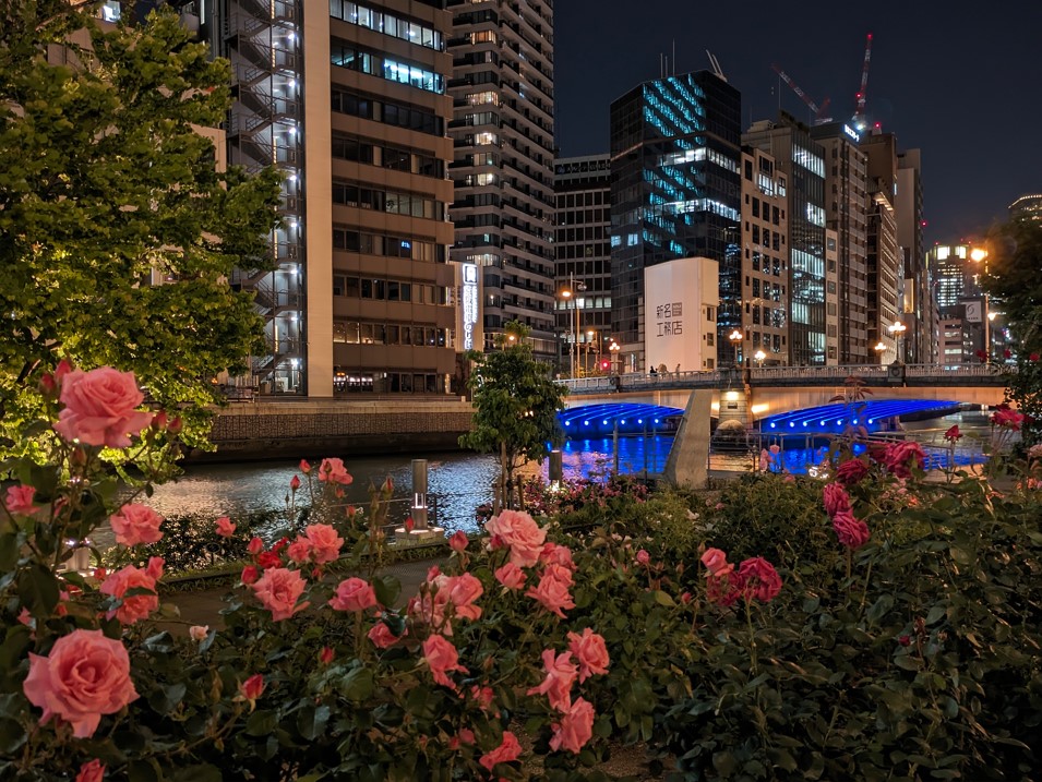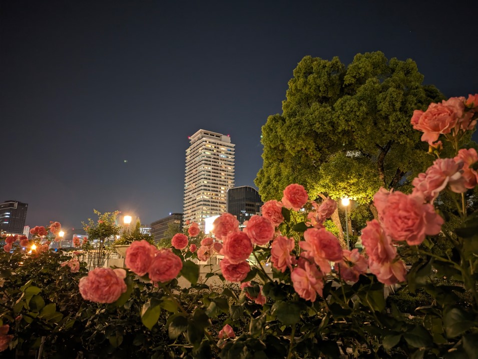 先に靭公園のバラを観に行き、その後徒歩でこちらに向かいましたがその途中