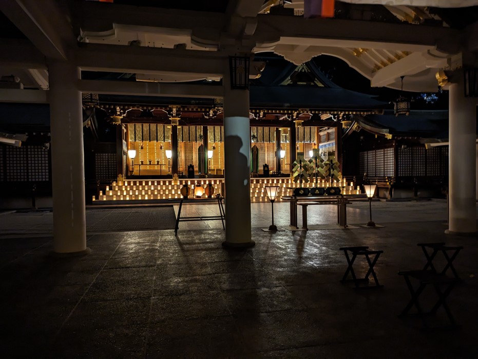 実際私も本殿と灯ろうの写真を撮りたくて何分か待ったのですが絶えず人が行き来するので無人で撮影することができませんでした。無人で撮れるのは端っことか目立たないところぐらいです。