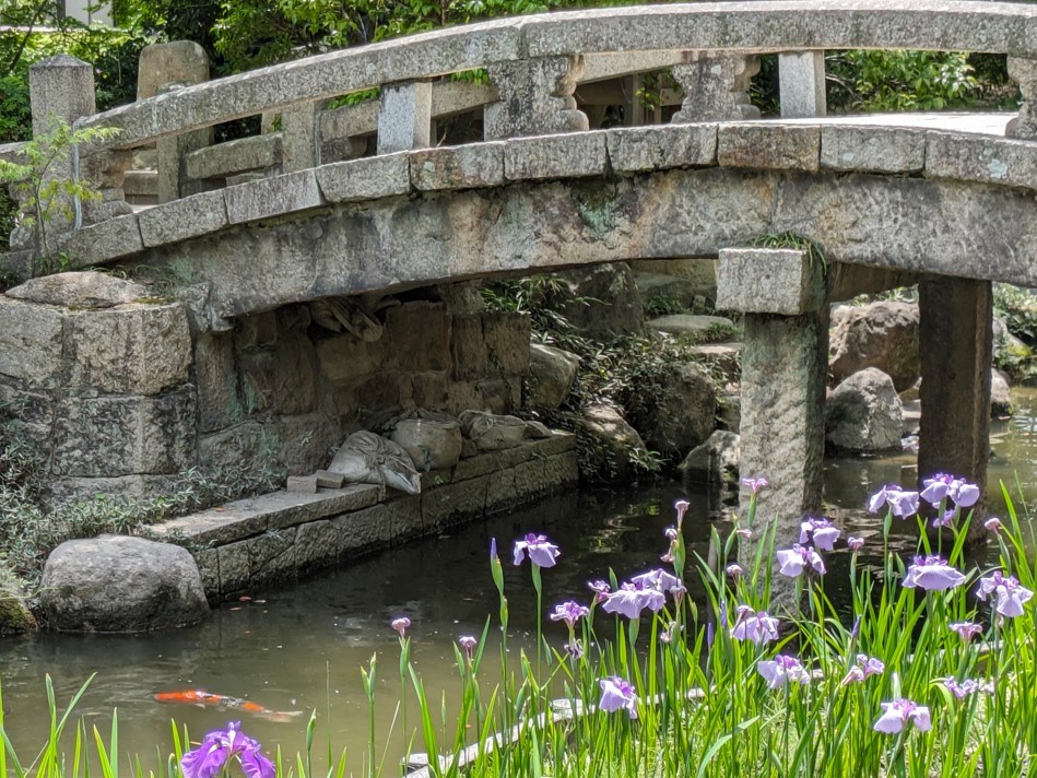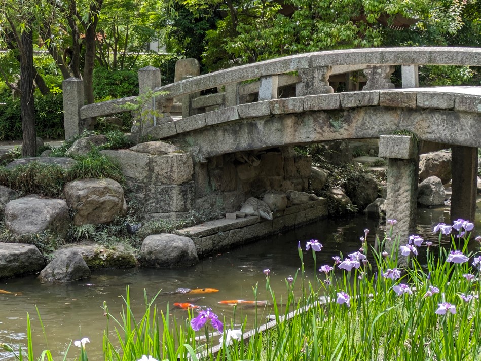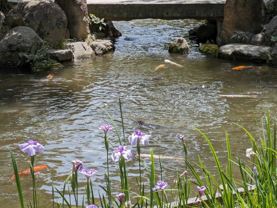 個人的には嘉永橋と花菖蒲を撮るのがオススメかなと思います。池には鯉が泳いでいるので一緒に撮るのもいいです。
