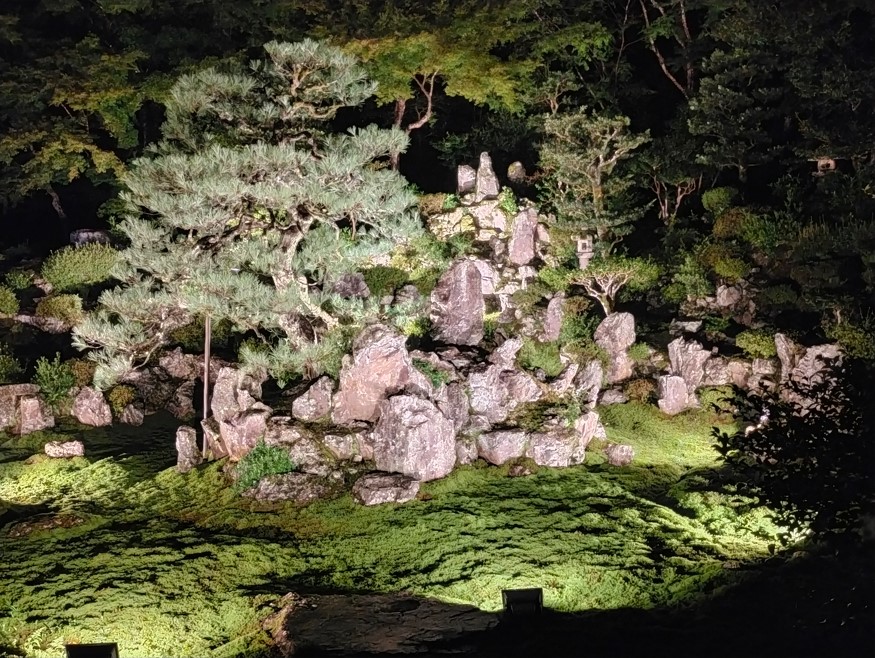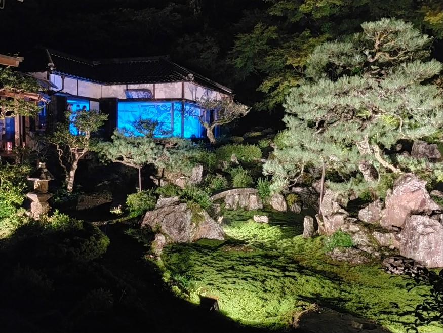 お庭にも出れて、そこでもライトアップが行われてました。