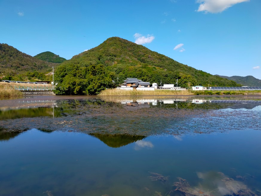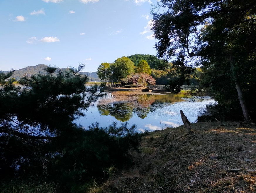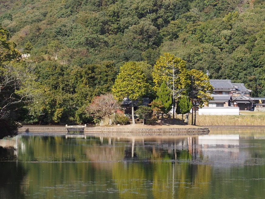 林田川の水を引いて鴨池を築造した際に池の中に小島を築き