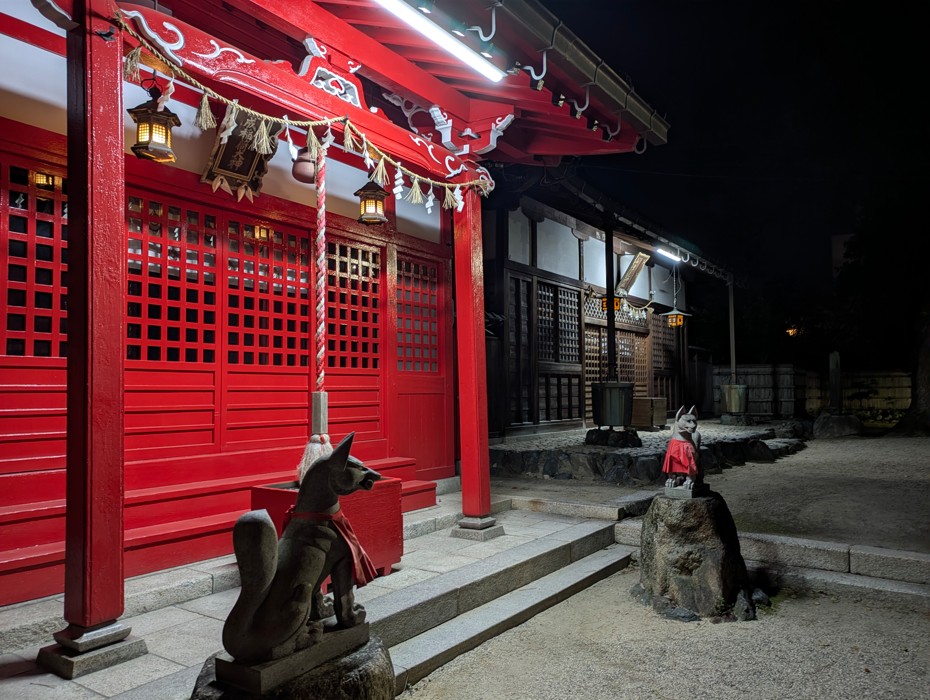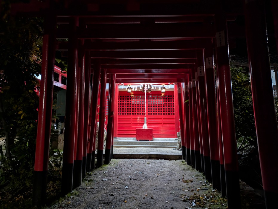 こちらではイルミネーションは行われていませんが、夜の神社ということで