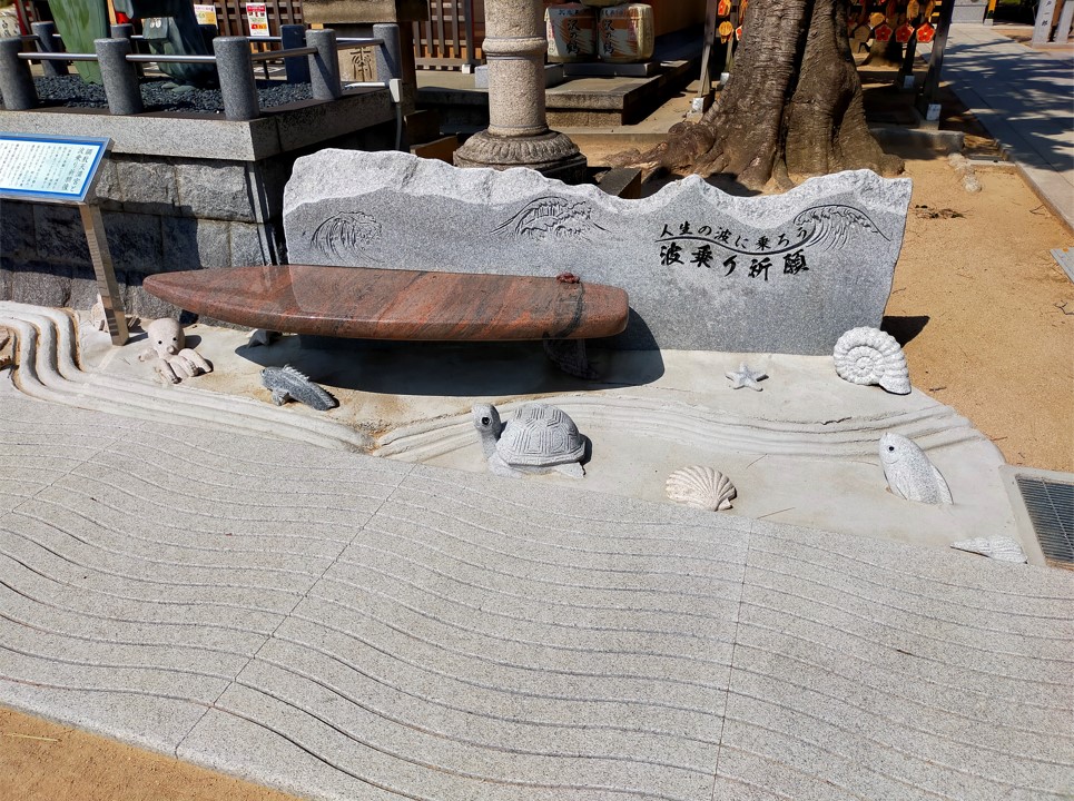 菅原道真公の幼少期の姿を模したもので、人生の成功や夢の成就を願う意味と時流や時勢の波に乗れるように祈願し、人生の波に乗る力を育む目的として建立されたそうです。