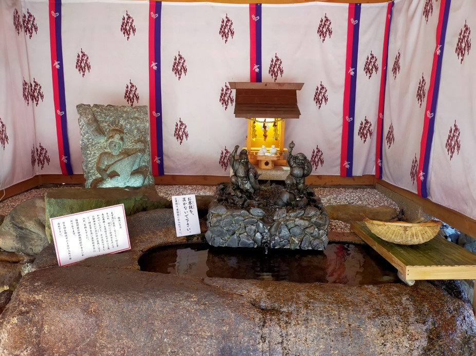 えびす様、だいこく様に水をかけ、そこから出た水で清めると福徳利益の御利益があるそうです